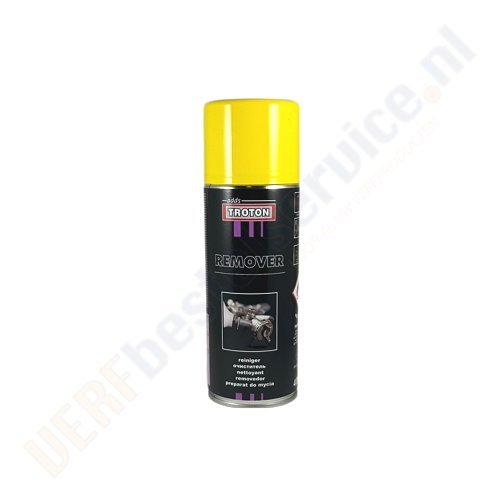 Troton afbijtmiddel in spuitbus. 400 ml verpakking. Krachtige afbijt in spuitbusvorm. Uniek product voor vele doeleinden geschikt. Aan te brengen op alle geverfde vlakken. Verwijdert verf en reinigt alle rubbers en dichtingen. Maakt oude dichtingen los, lost alle vulpasta’s op, evenals koolaanslag, verharde film en vetten. Na het aanbrengen wordt de verf aangetast en zeer snel week. Aanbevolen voor metalen oppervlakken, evenals op hout, pleister en glas. Verwijdert eveneens graffiti.